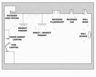 直接照明的目的很明確,就是點(diǎn)亮一部分區(qū)域,而間接照明則有利用營(yíng)造空間氛圍,直接間接照明兩者的功能都有,漫射照明則點(diǎn)亮整個(gè)空間。