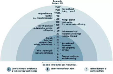 指單位面積上所接受可見(jiàn)光的光通量,單位是勒克斯(Lux)。