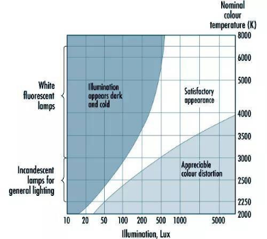 當(dāng)然色溫及照度之間也是有關(guān)系的,只有合適亮度下合適色溫的燈光,才能得到好的感官體驗(yàn)。
