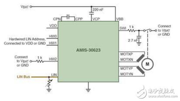 圖2:AMIS-30623前照燈水平調(diào)整和偏轉(zhuǎn)電路