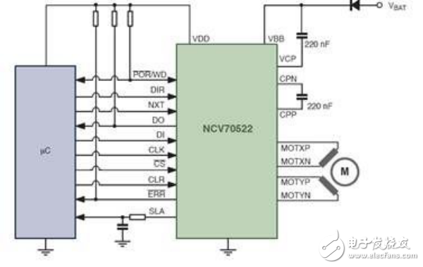 圖3:NCV70522單芯片微步進(jìn)電機(jī)驅(qū)動器