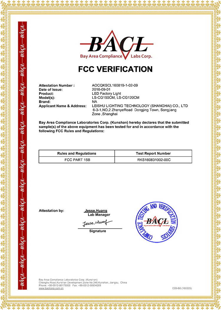 FCC 美國(guó)聯(lián)邦通信認(rèn)證 150W LED工礦燈