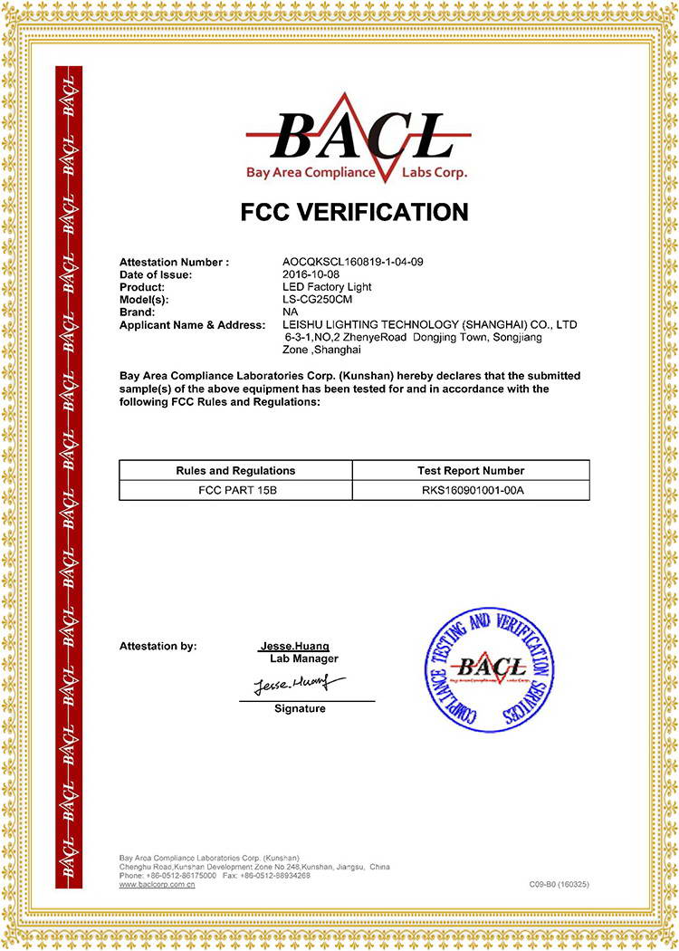 FCC 美國聯(lián)邦通信認證 150W LED工礦燈